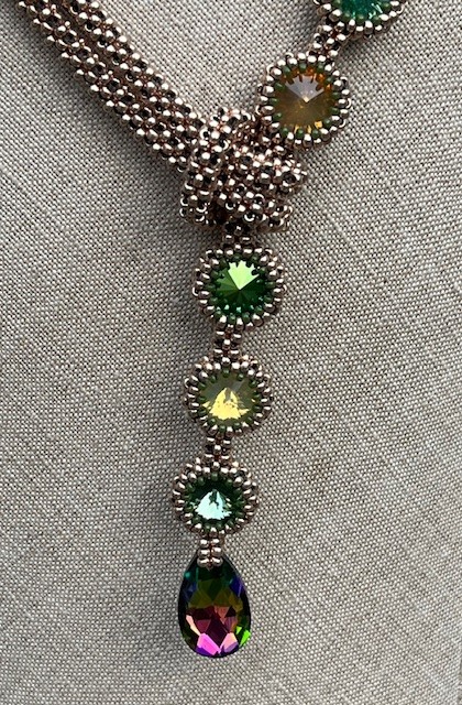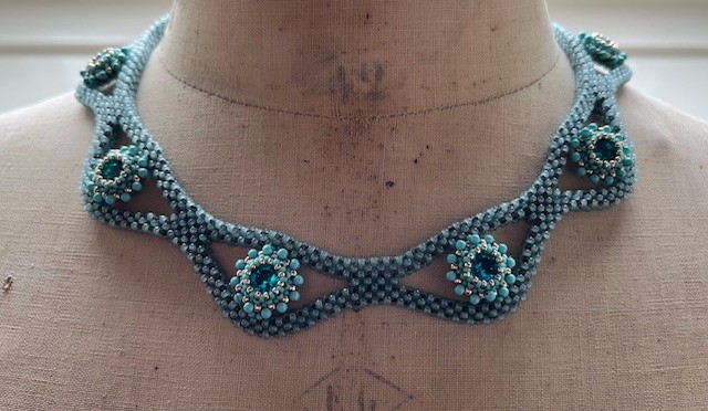 Deze ketting is gemaakt naar het patroon ‘Angelique’ van Monique de Boer (WirWar kralen).