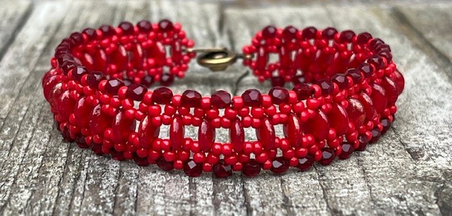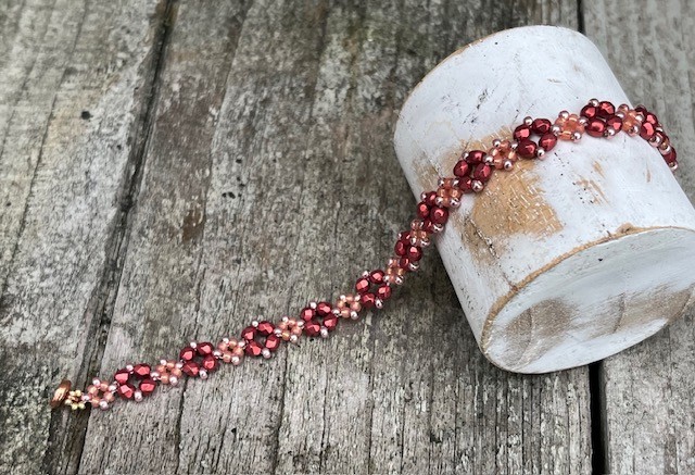 Echt een heel erg leuk armbandje om te maken en met een mooi resultaat. De armbanden zijn gemaakt naar een patroon van Trendsetter – Eileen Barker.