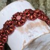 De armbanden zijn geregen met in het midden van de ‘bloemetjes’ leuke button kralen, daaromheen superduo kralen, afgewisseld met (Swarovski) bicone kraaltjes en verder bestaat het armbandje uit veel kleine Japanse Miyuki of Toho kraaltjes. De armband is afgewerkt met een bijpassend stevig magneetslotje (niet geschikt voor mensen met een pacemaker).