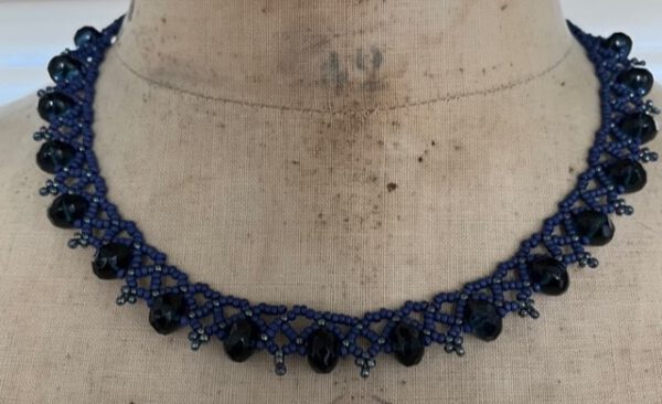 Deze ketting is geheel geregen zijn met mooie Tsjechische rondelle kralen en 2 kleuren Miyuki of Toho kraaltjes in een leuk patroon.