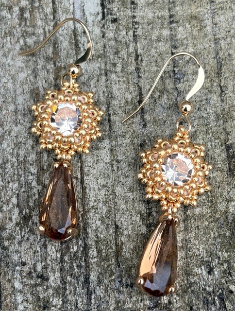 Deze oorbellen bestaan uit een Swarovski of Preciosa crystal chaton in het midden welke omrand is met goudkleurige kraaltjes. Daaronder een mooie bling crystal glasdruppel in een goudkleurige setting. Dit is de iets kortere versie van de Frozen Bling oorbellen, want hierbij heb ik namelijk de crystal snowflake weggelaten. Voor wie van niet al te lange oorbellen houdt.